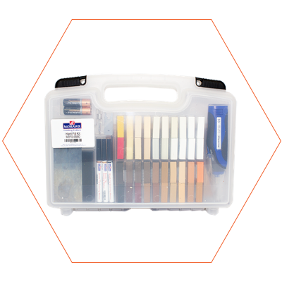 Mohawk's Hard Fill kit contains all the products and tools needed to repair minor and medium defects in wood and rigid plastic in a handy carrying case.