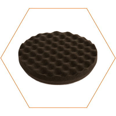 A reticulated waffle shape structured foam pad for hologram removal gives an excellent finishing on both fresh and fully cured paint works.