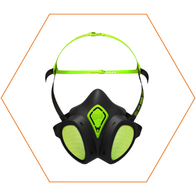 The shape of the mask offers a perfect seal without any unpleasant pressure on the nose or mouth of the user. The compact size of the mask and the lower positioning of the filters reduces interference with the visual field, allowing for higher visibility.
