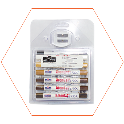 Mohawk Blendal® Sticks are used to add or alter colour when repairing and touching up wood. This product allows quick colour replacement on raw or finished edges and flat surfaces.