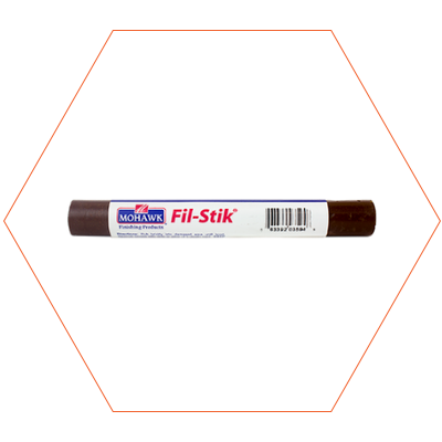 Quick and easy-to-use sticks for touching up wood. Eliminate scratches, nicks or abrasions on wood furniture, picture frames, plastics and panelling with Fil-Stik®.