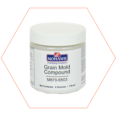 Grain Mold Compound is blended with a specific amount of catalyst, then spread over the desired grain surface. The catalyst cures the Grain Mold Compound to an exact duplicate of the grain surface in a few minutes. The mold is infinitely reusable.