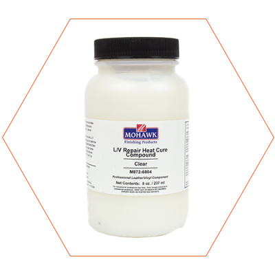 Clear vinyl repair compound used to repair cuts or holes in worn vinyl fabric and pigmented leathers.