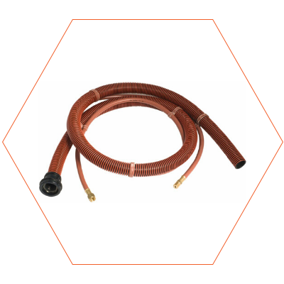 A flexible suction hose connecting a Mirka® sander with a Mirka® dust extractor.