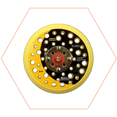 The 5mm thick multi-hole interface pad is used in combination with grip sanding discs for sanding rounded surfaces and contours.