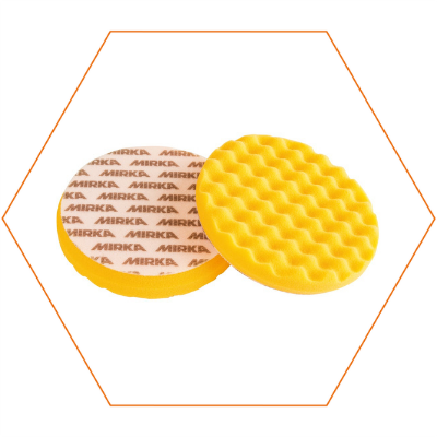 A reticulated waffle shape structured foam pad for hologram removal gives an excellent finishing on both fresh and fully cured paint works.