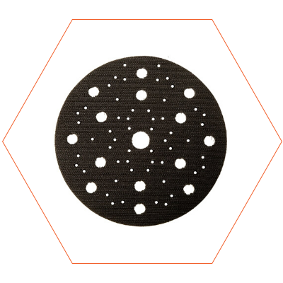 The 5mm thick multi-hole interface pad is used in combination with grip sanding discs for sanding rounded surfaces and contours.