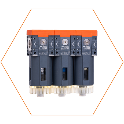 - The filter catches liquid or solid impurities present in the compressed air. As they accumulate, they drop to the bottom of the filter and drain away, preventing them from reentering the airflow. The drainage automatically occurs when the pressure in the filter drops to zero. Alternatively the condensate can be drained manually.