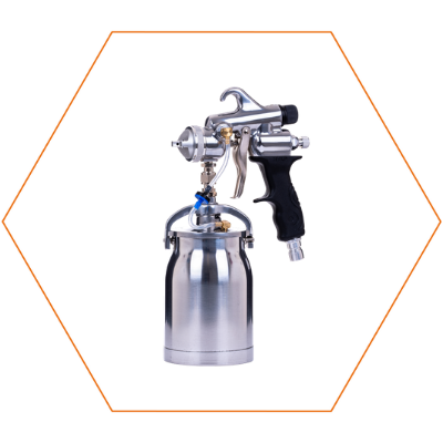 An HVLP spray gun for detailed work, such as shading and colouring, for use with solvent based products.